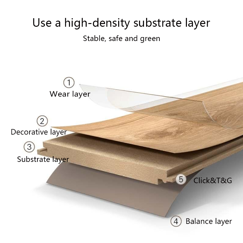 3) O piso laminado é composto por uma camada resistente ao desgaste, uma camada decorativa, uma camada de base e uma camada de equilíbrio.